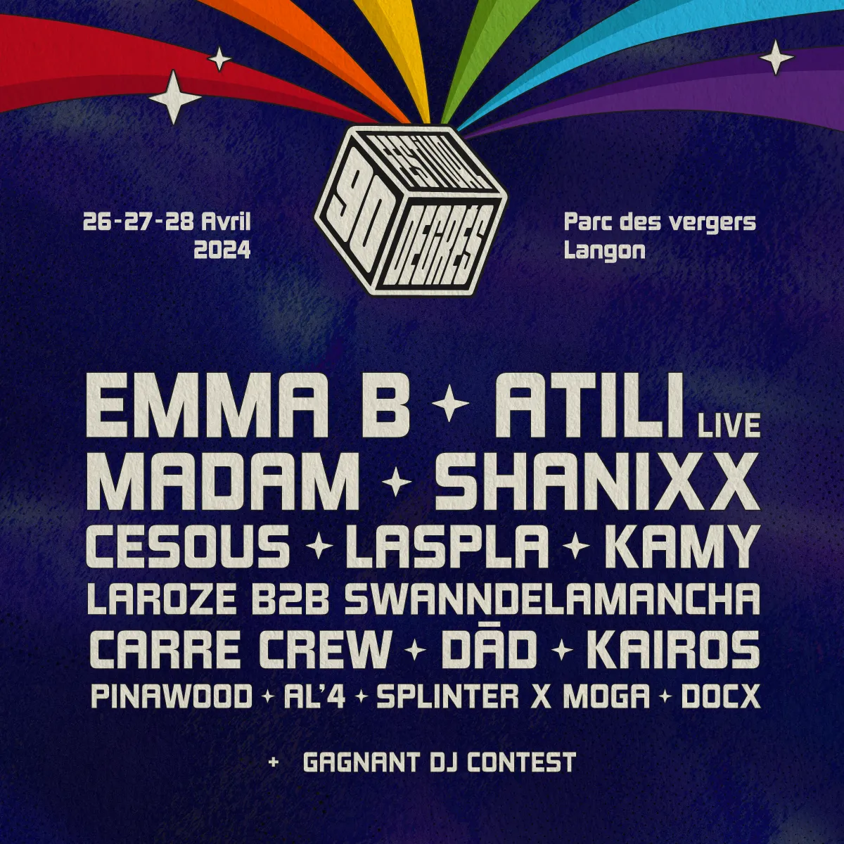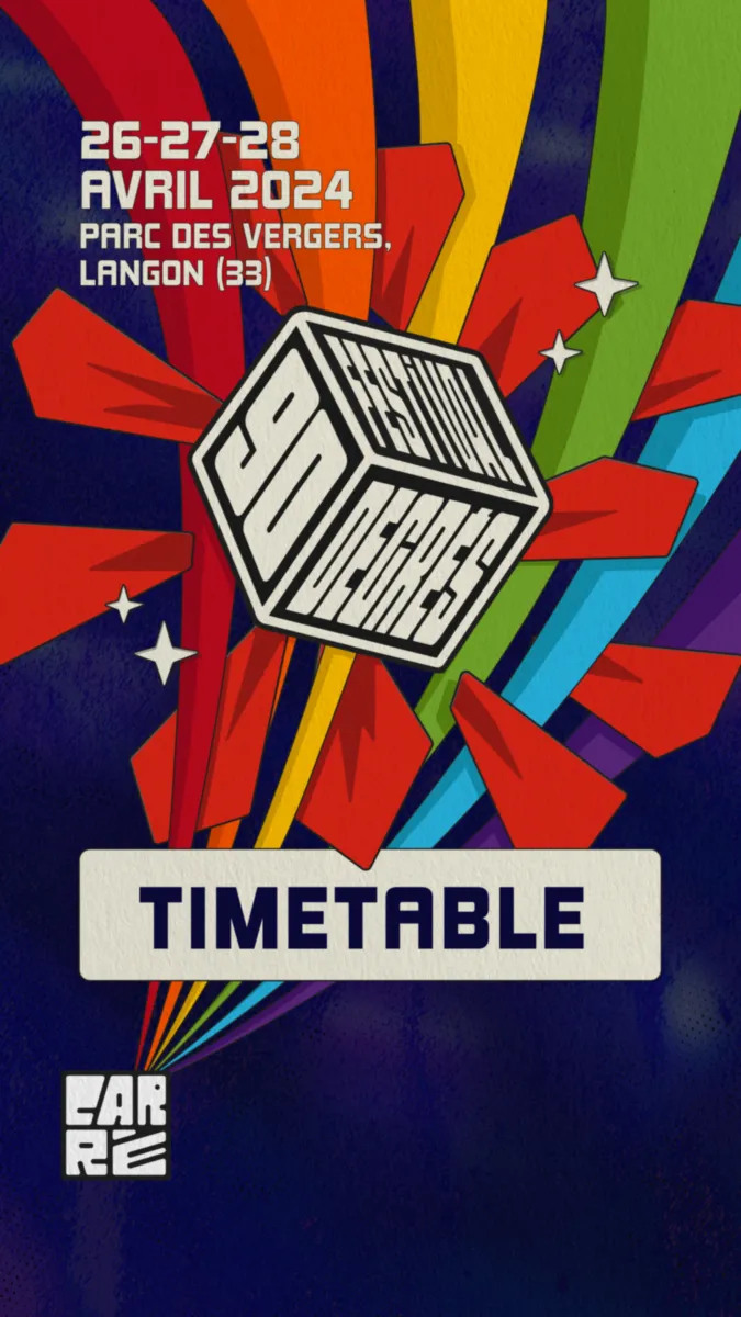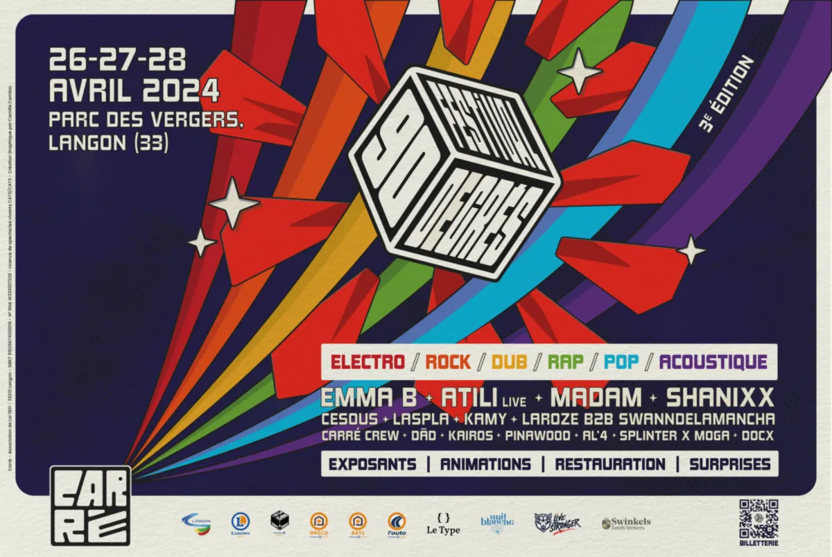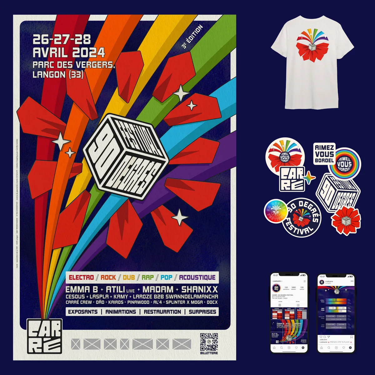 90 Degrés Festival est un événement organisé par l’association C’est Carré. La direction artistique de cette édition devait faire évoluer le concept de la fleur – signature de l’édition précédente – et intégrer un arc-en-ciel, symbole de diversité musicale et d’inclusivité.