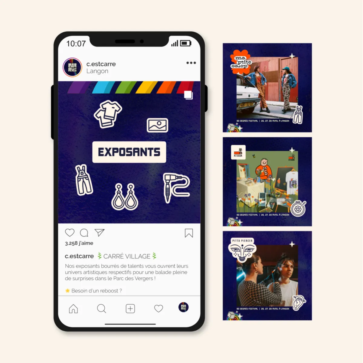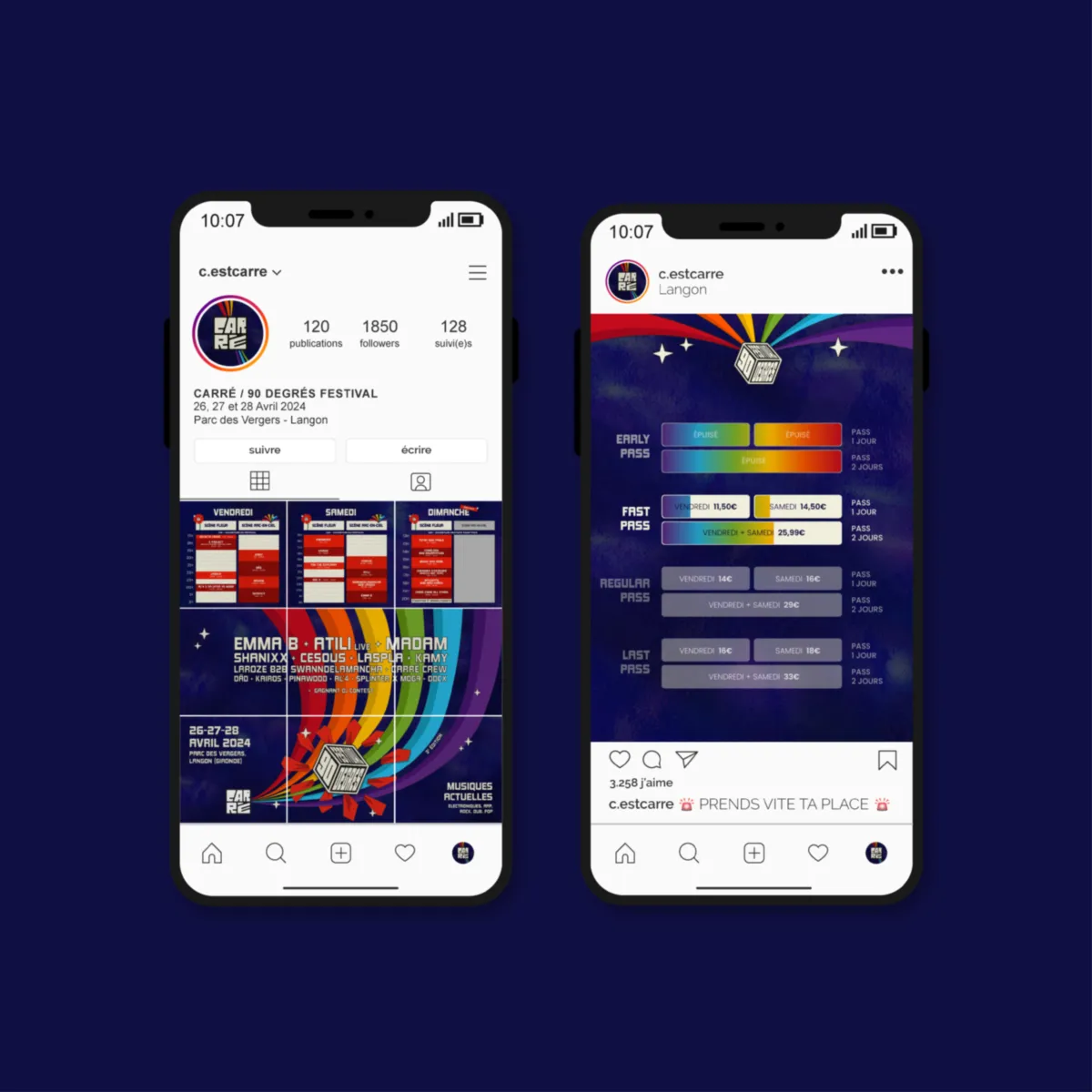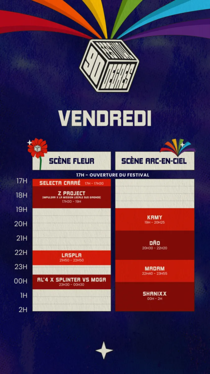 90 Degrés Festival est un événement organisé par l’association C’est Carré. La direction artistique de cette édition devait faire évoluer le concept de la fleur – signature de l’édition précédente – et intégrer un arc-en-ciel, symbole de diversité musicale et d’inclusivité.