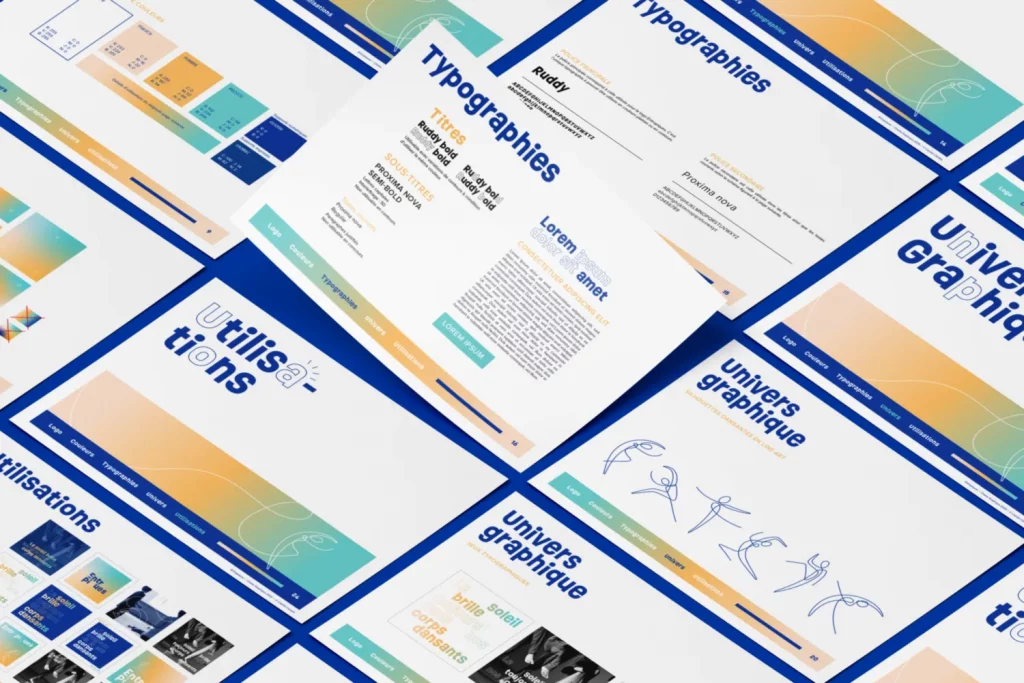 - une charte graphique complète contenant typographies, couleurs, éléments graphiques, règles d’utilisation, exemples d’utilisation, mises en situation, indications claires pour assurer la cohérence visuelle et la crédibilité de ton projet